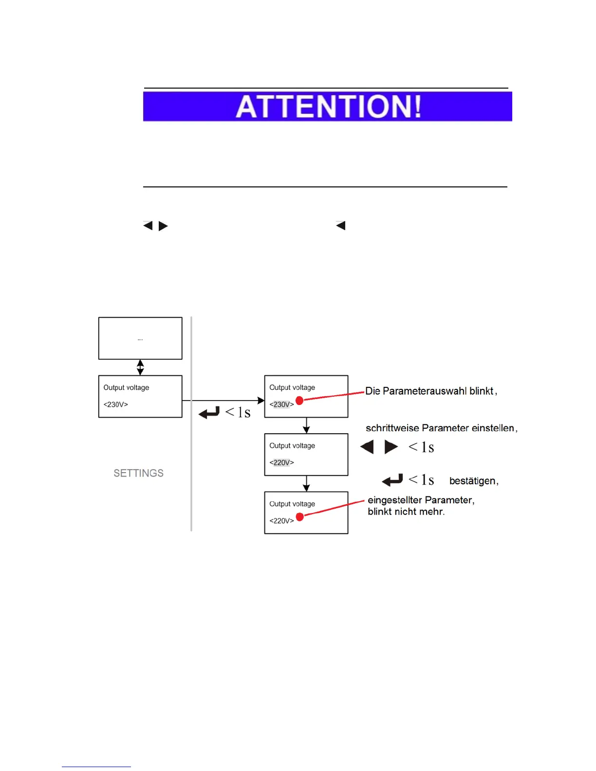 Navigate to the desired menu page (parameter) here only with the arrow keys (
