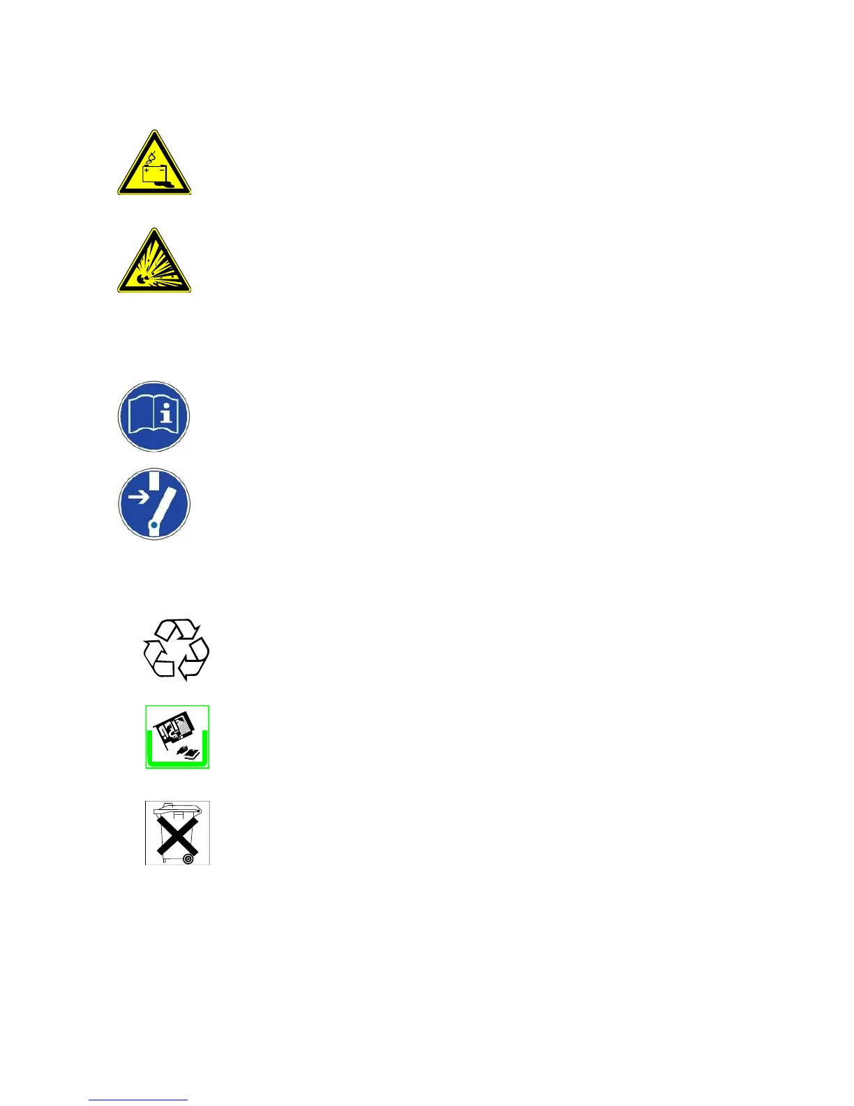 Identifies components or parts that must be disposed of properly. Do not throw