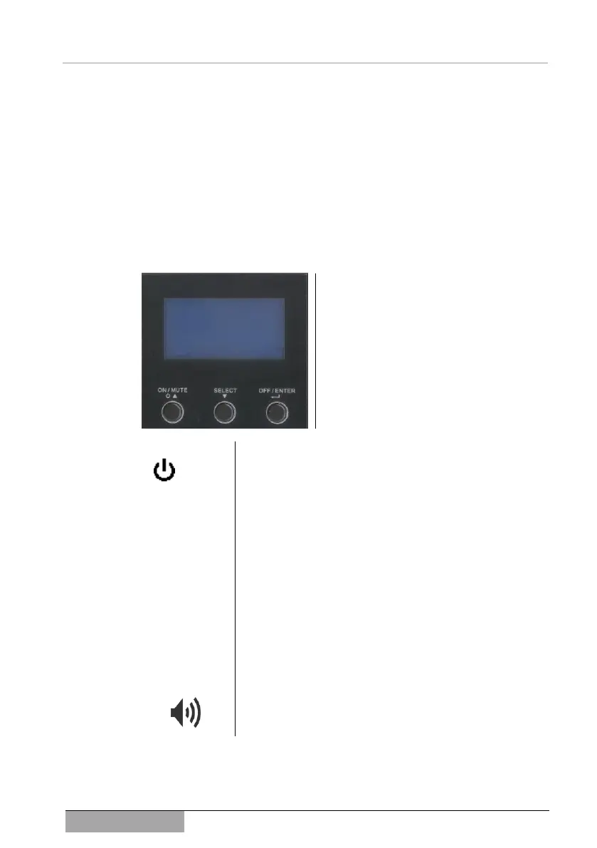 This button switches the device on (ON), mutes acoustic