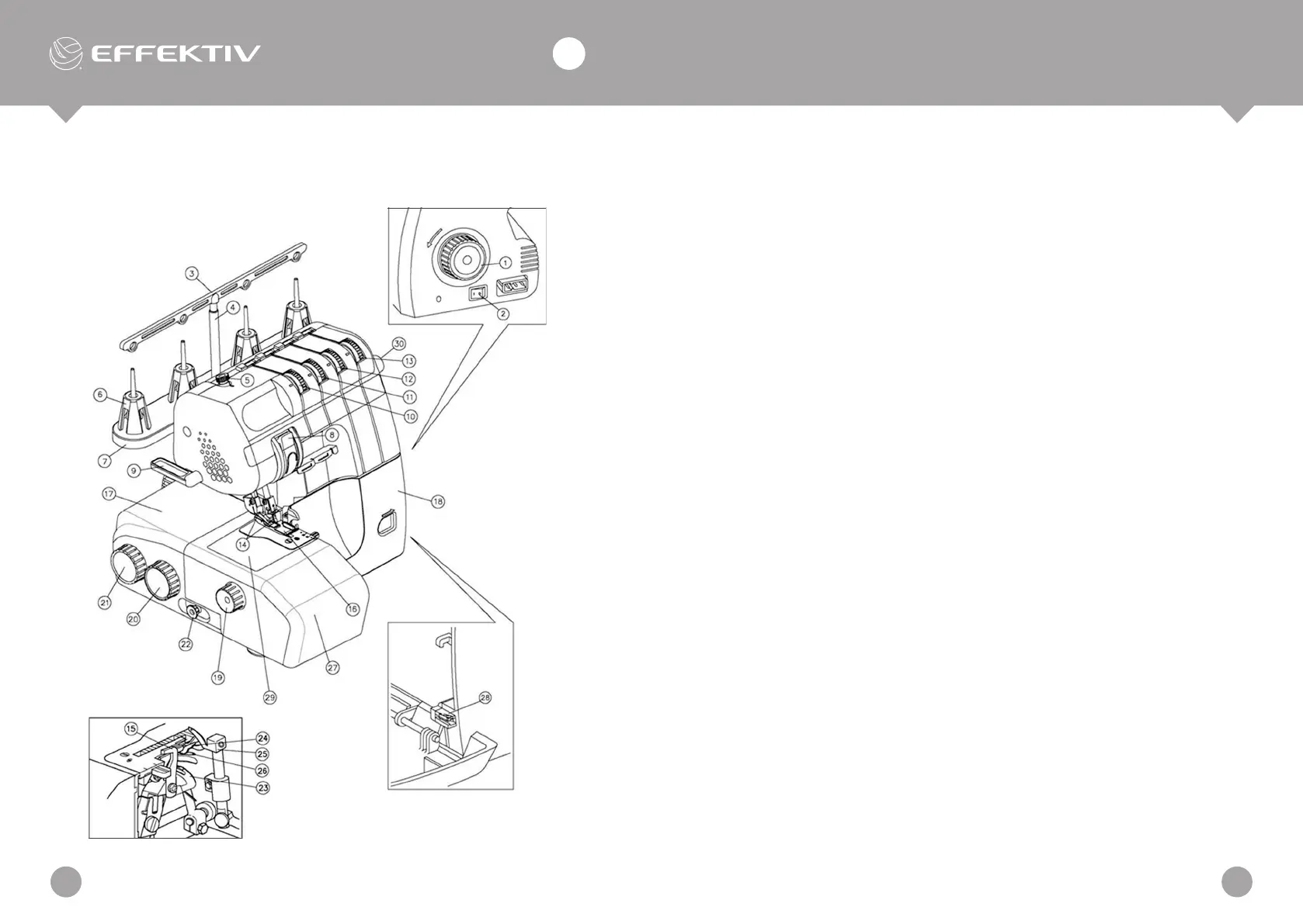 5. Einstellungsschraube des Stoffstangedrucks auf den Stoff