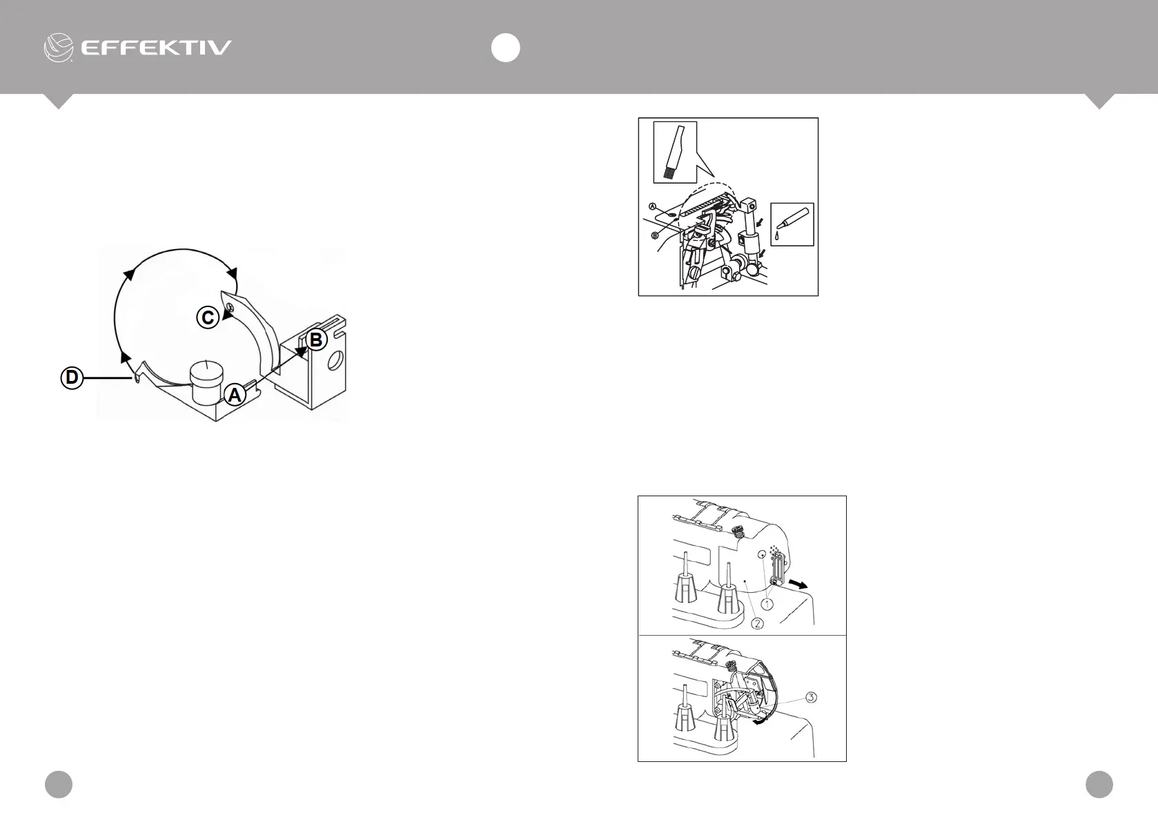 2. Tragen Sie einen Tropfen Nähmaschinenöl an den durch die Pfeile gek-