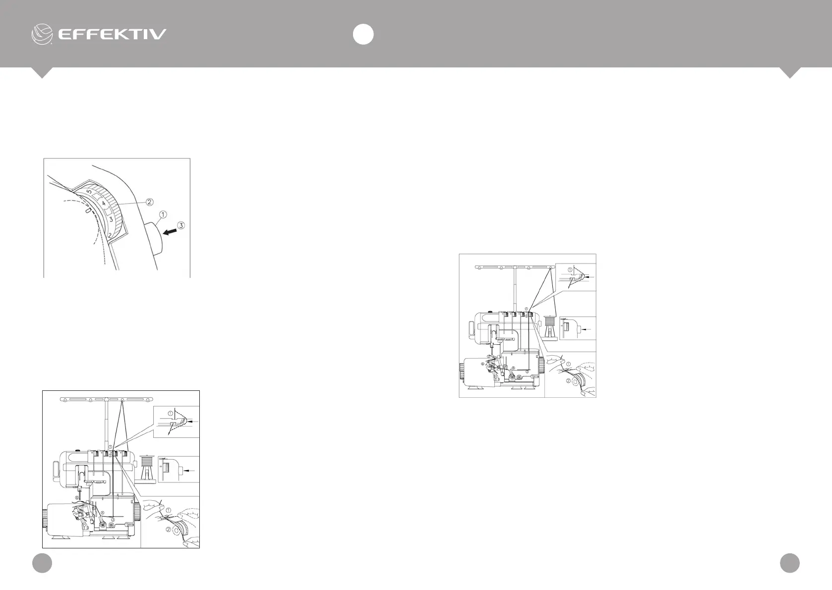 4. Pull the thread towards the lower looper through the thread guides 3-7