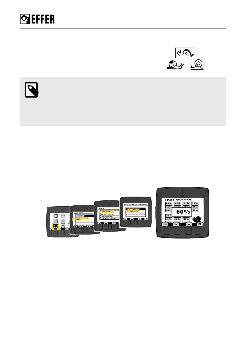 1. Go to the ‘Crane settings’ menu on the display panel and select ‘Utilities’, ‘Speed setting’ and