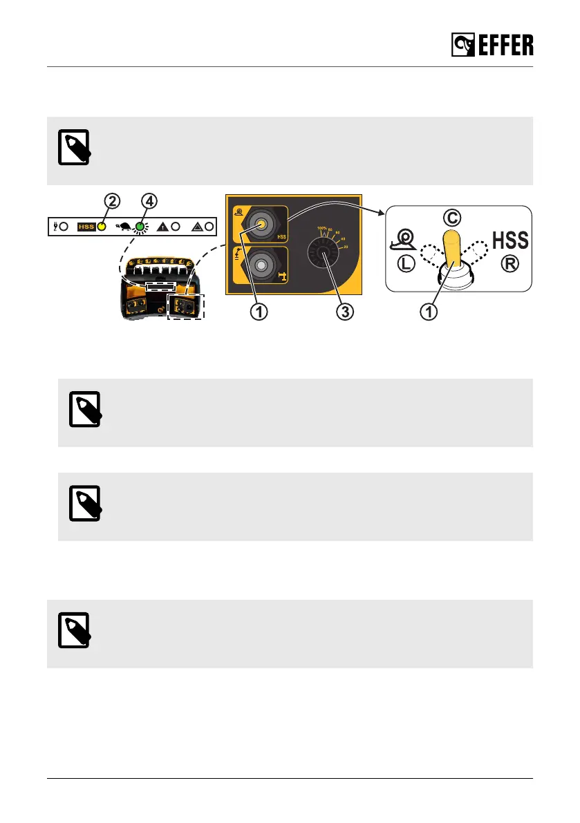 • To activate the feature HSS, turn the selector (1) to the HSS symbol (R). The yellow light (2) is