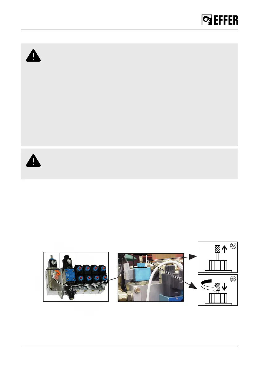 3. Activate the emergency operation of the main solenoid valve by pushing the spool and turning