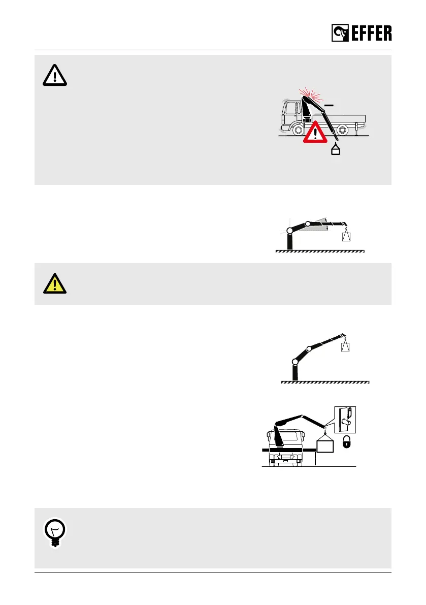 Heavy loads cannot be handled with the boom straight.