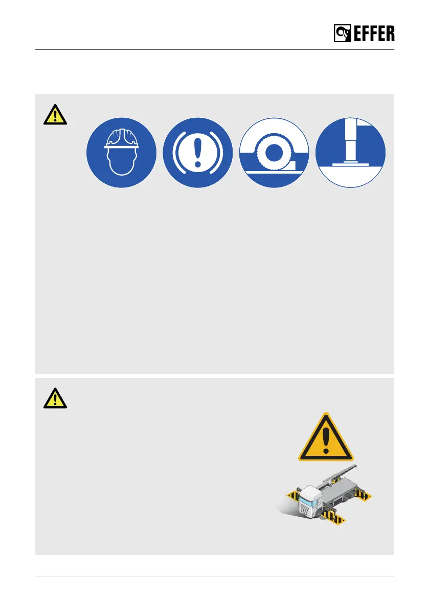 • The stabiliser legs must not sink in! Use support plates that are large and firm