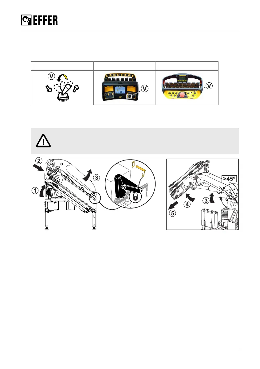 8. If needed, extend the crane boom extensions (5).