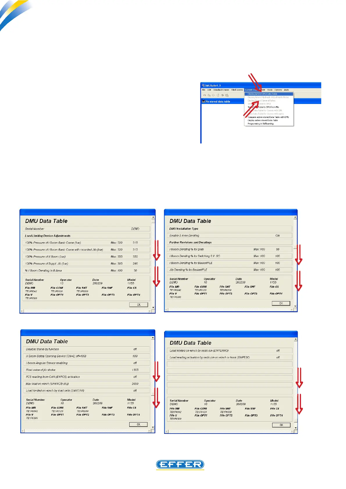 u DISPLAY/CHANGE DMU DATA SHEET