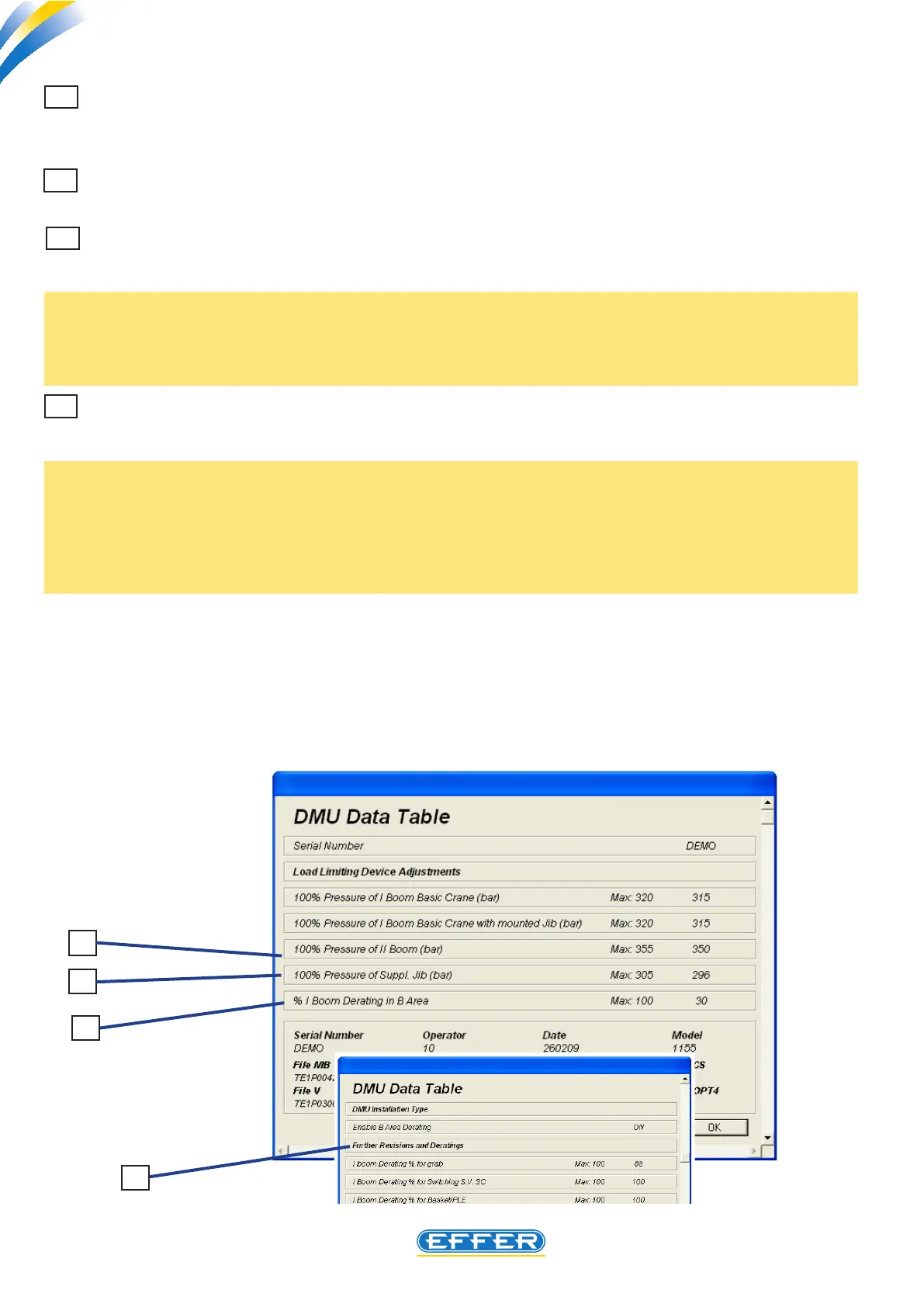 When this pressure value inside the second boom cylinder is achieved, the load limiting device is oper-