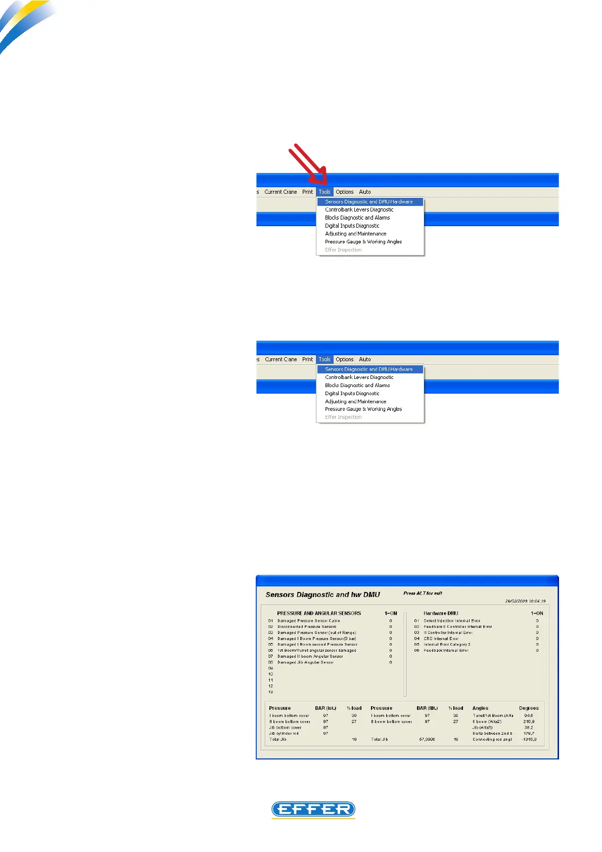 By connecting the DMU to the computer it is possible to obtain more detailed information on a fault in