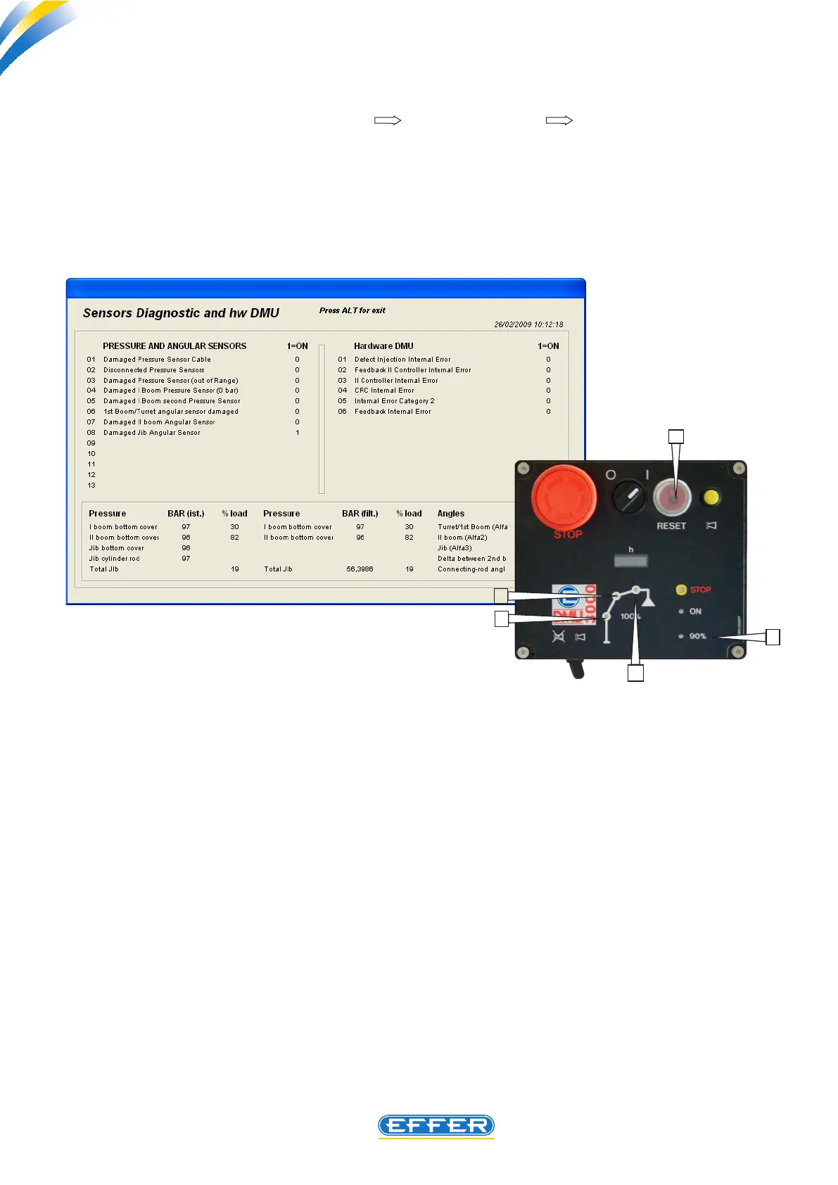 - “1” appears next to: “jib angular sensor damaged”