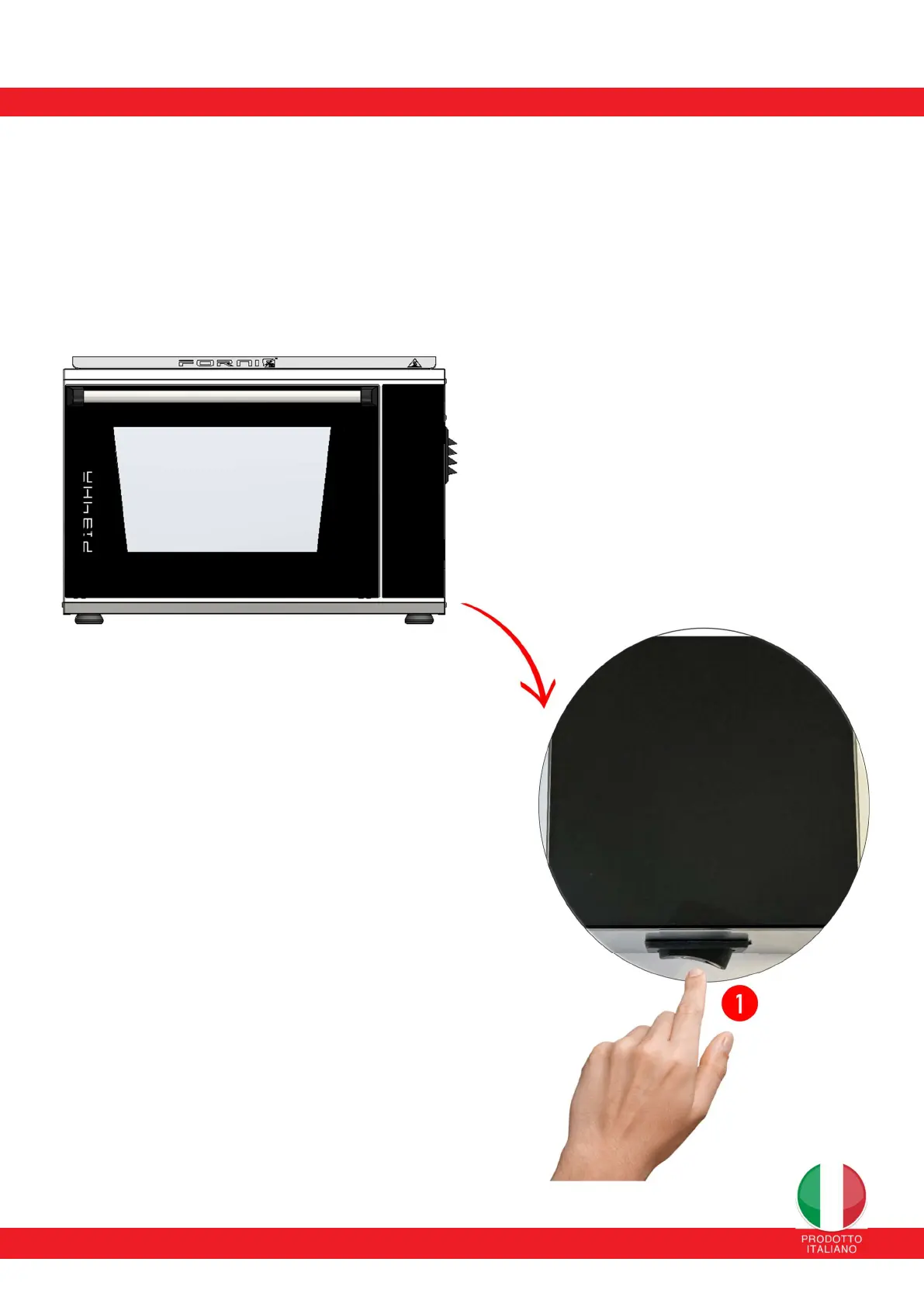 Once the oven is powered by connecting it to the power outlet, activate the display by pressing button (1) located