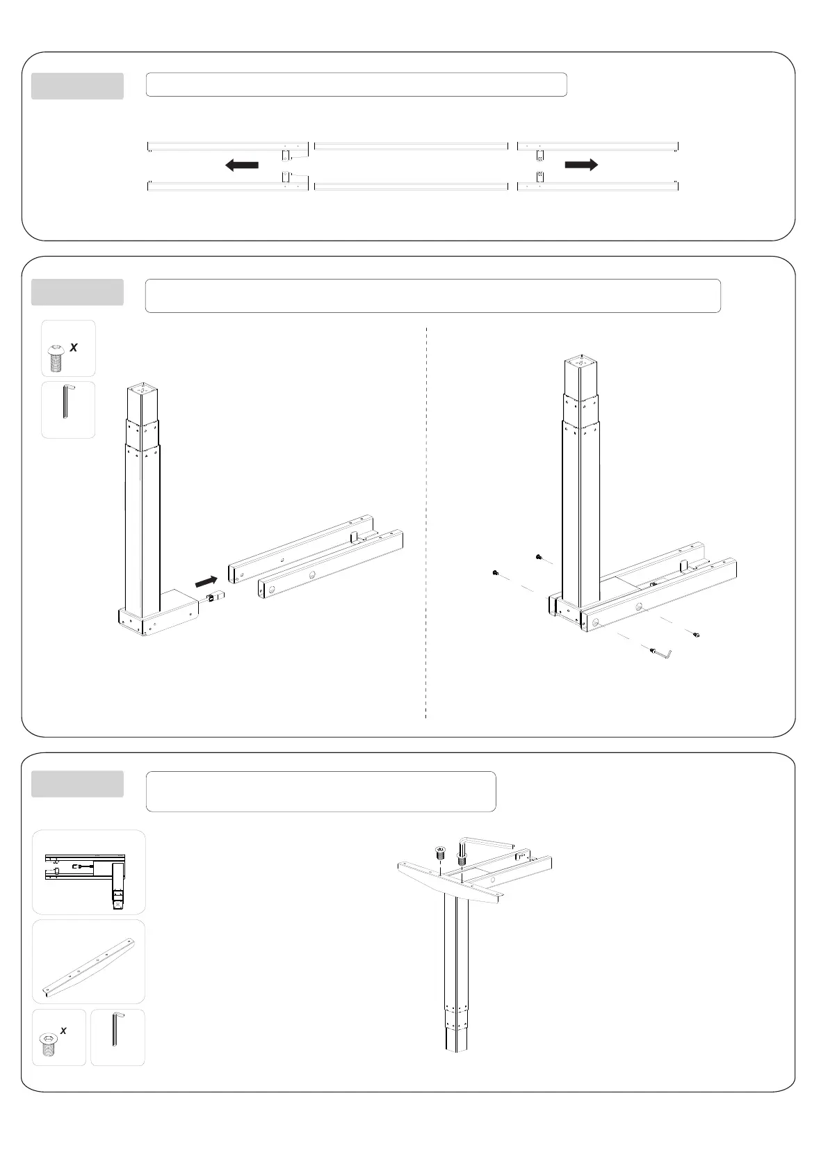 Insert one of the Crossbar Ends into the one of the Lifting Columnsand secure with screws.