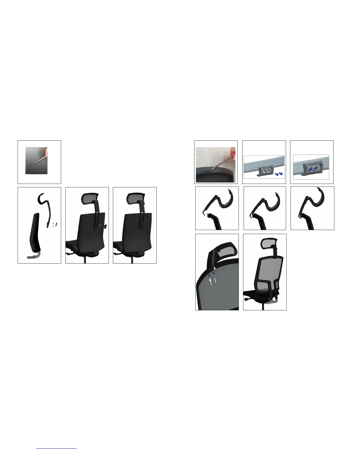 EFG ONE - Headrest Assembly Procedures; Assembly on Fabric or Plastic Backs; Assembly on Mesh Backs