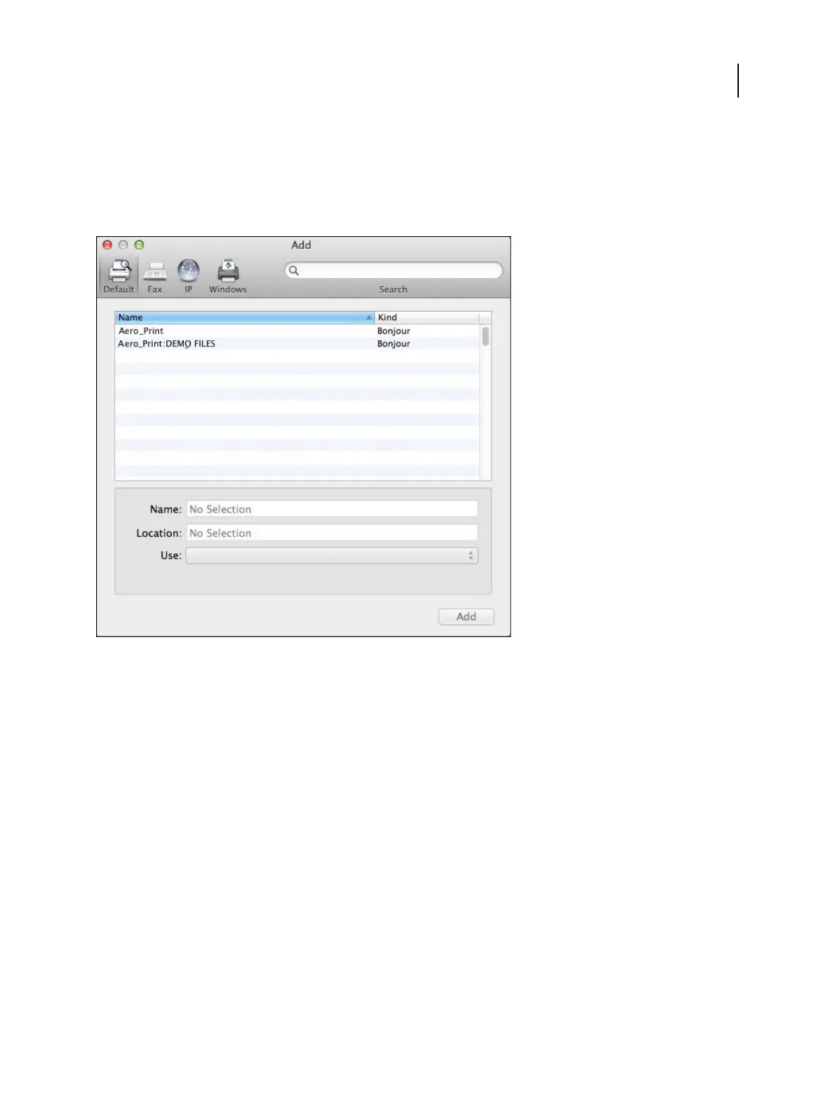 You can add a printer with the Default connection on a Mac OS X v10.10 client computer.
