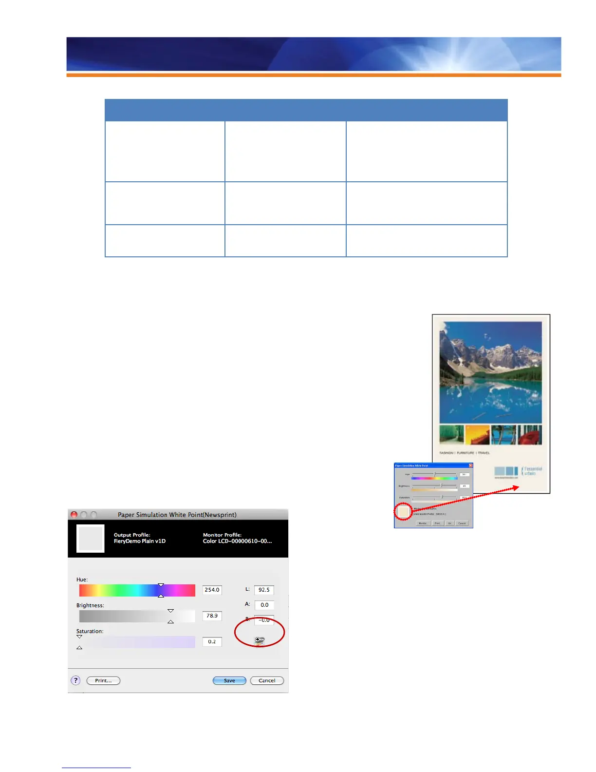 “newsprint” and “bright white” paper. The Paper Simulation with the White Point Editing