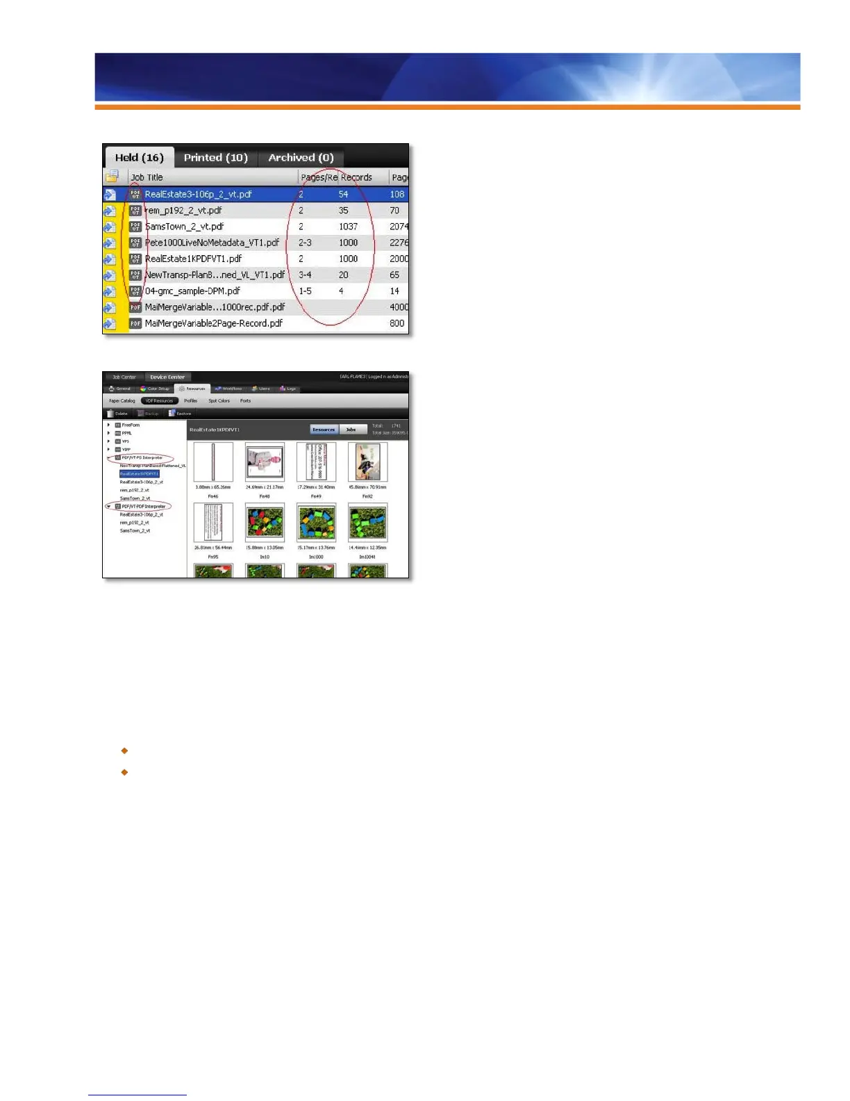 PDF/VT is displayed as a file type in Command Workstation; the number of records and pages per record are also displayed.