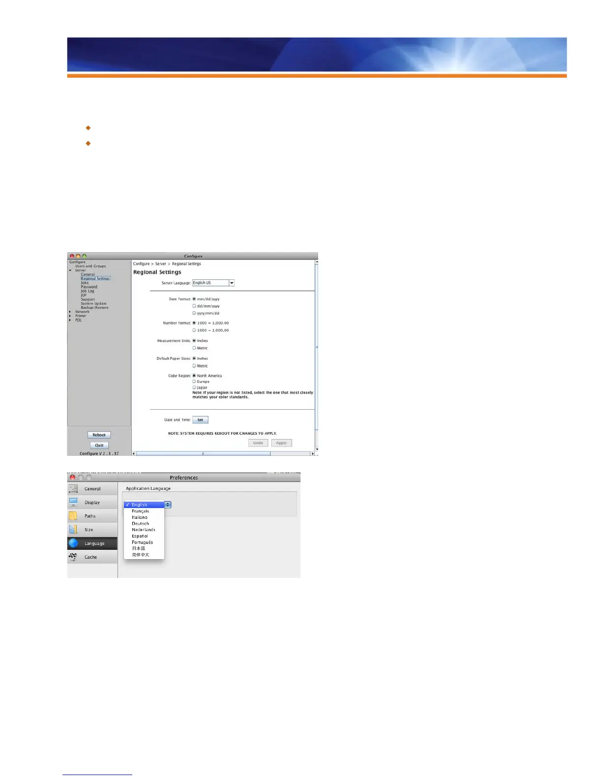 The Command WorkStation print job interface can also display the appropriate format for date, numbers, units of measurement, default