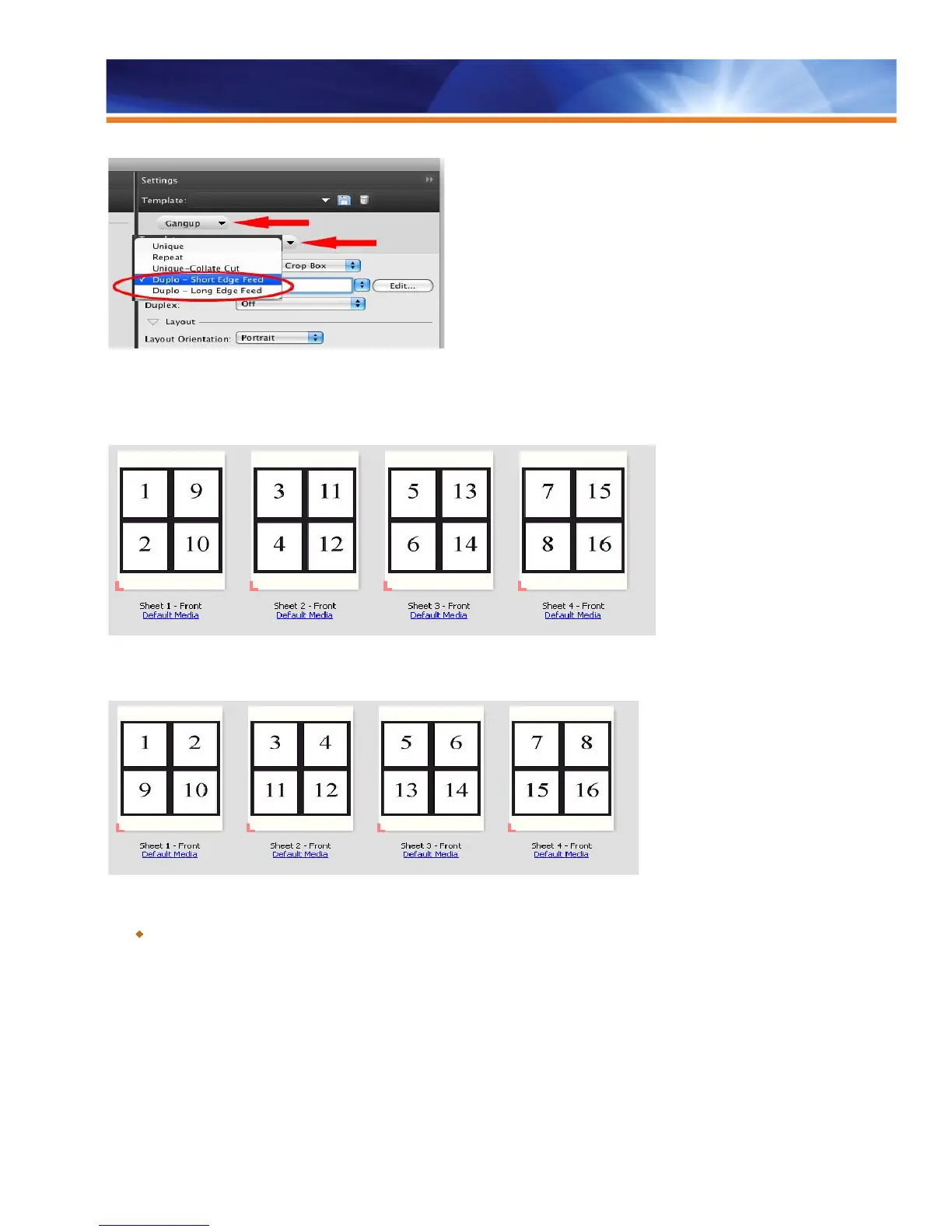 The Duplo — Short Edge Feed Imposition Layout orders pages sheet wise in line with columns or rows perpendicular to the shortest