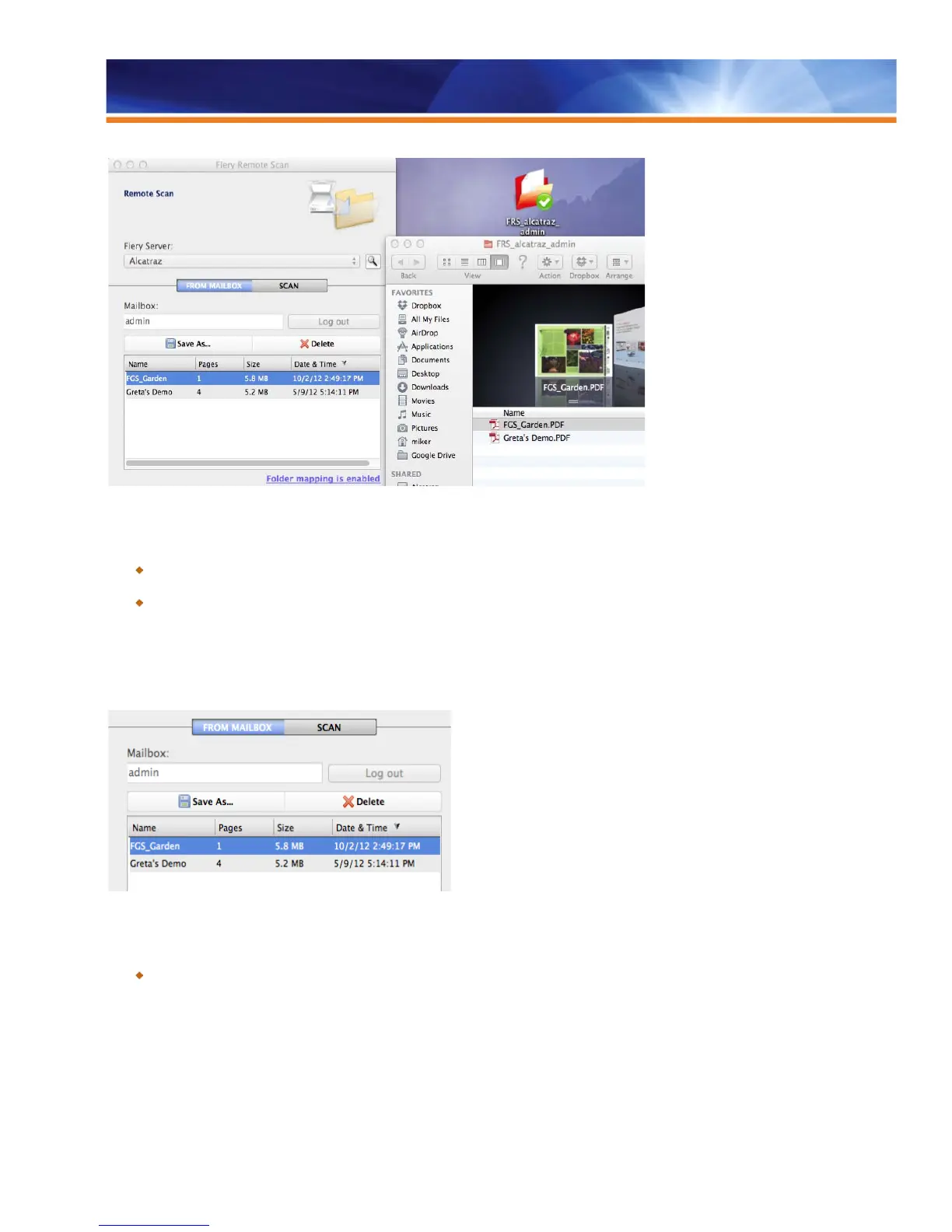 Fiery mailbox contents are displayed on the Mac client