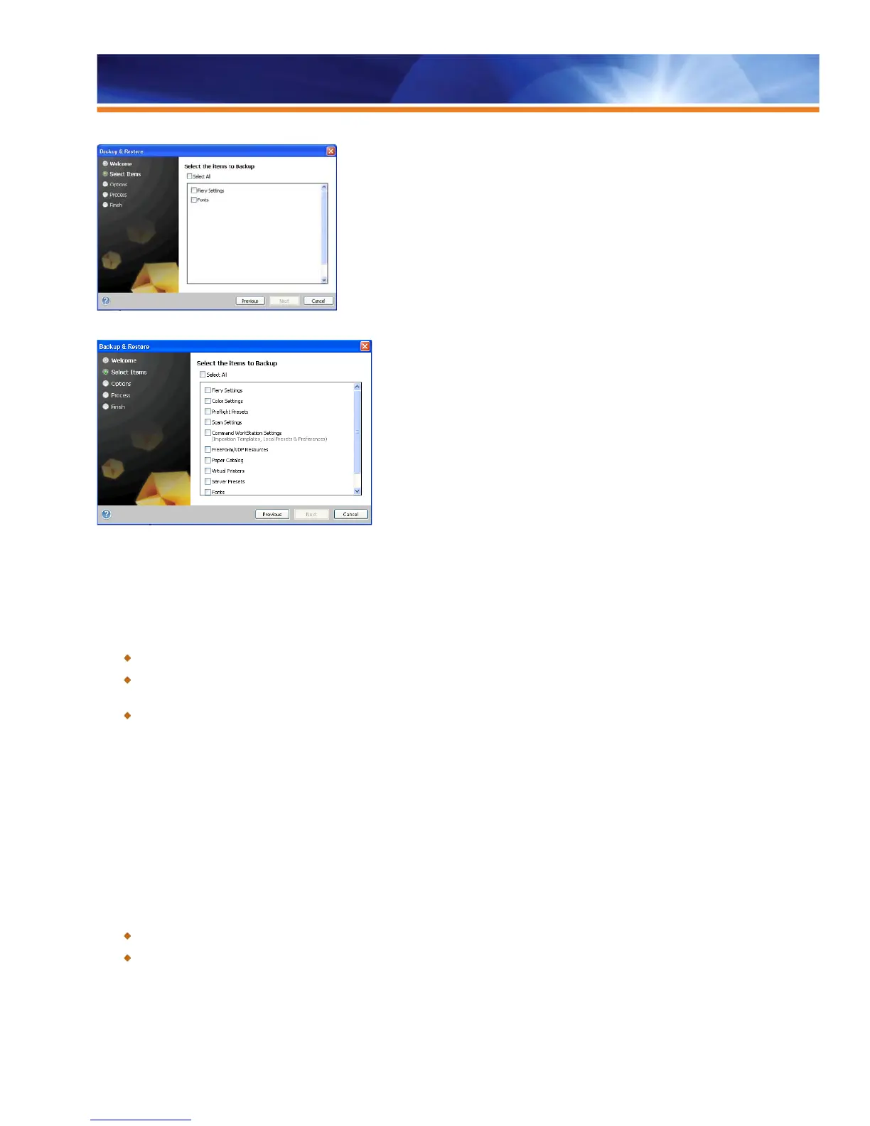 upgrade their Fiery server and restore their settings later.