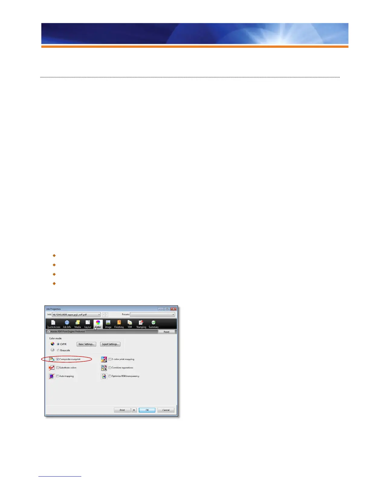 These imaging improvements can be seen in the Job Properties > Image tab. VDP caching improvements are located in the Job