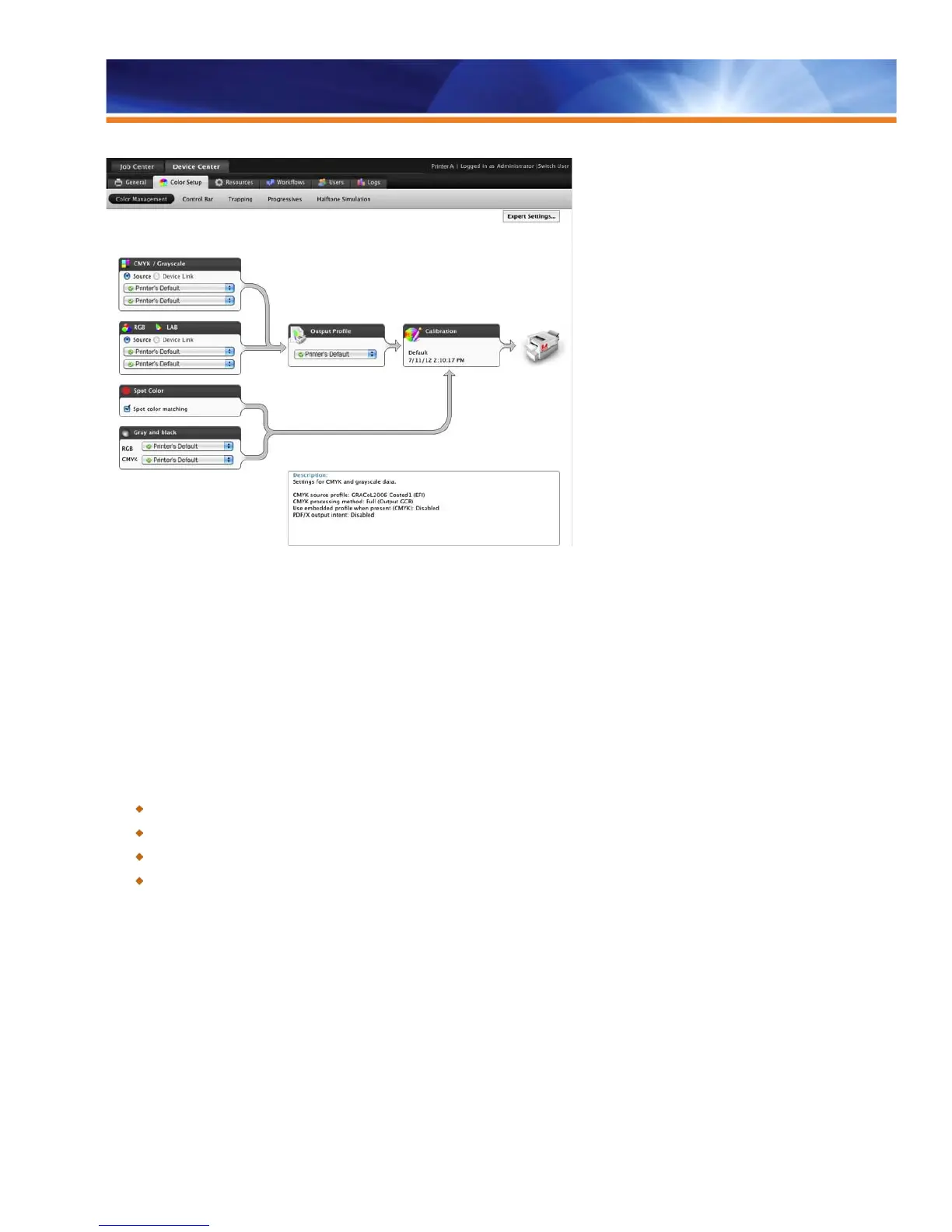 simulations, output or device link profiles with Fiery Profile Manager for complete control over source color spaces, press simulations and