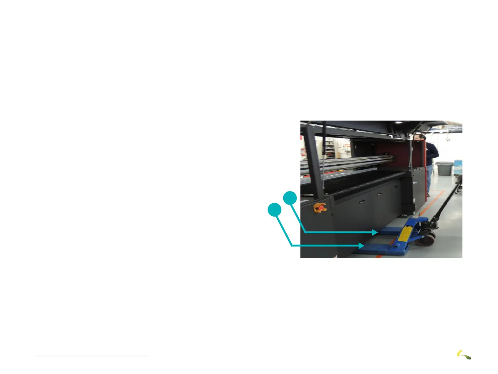 3. Ensure that the lifting forks are at the printer’s center of gravity