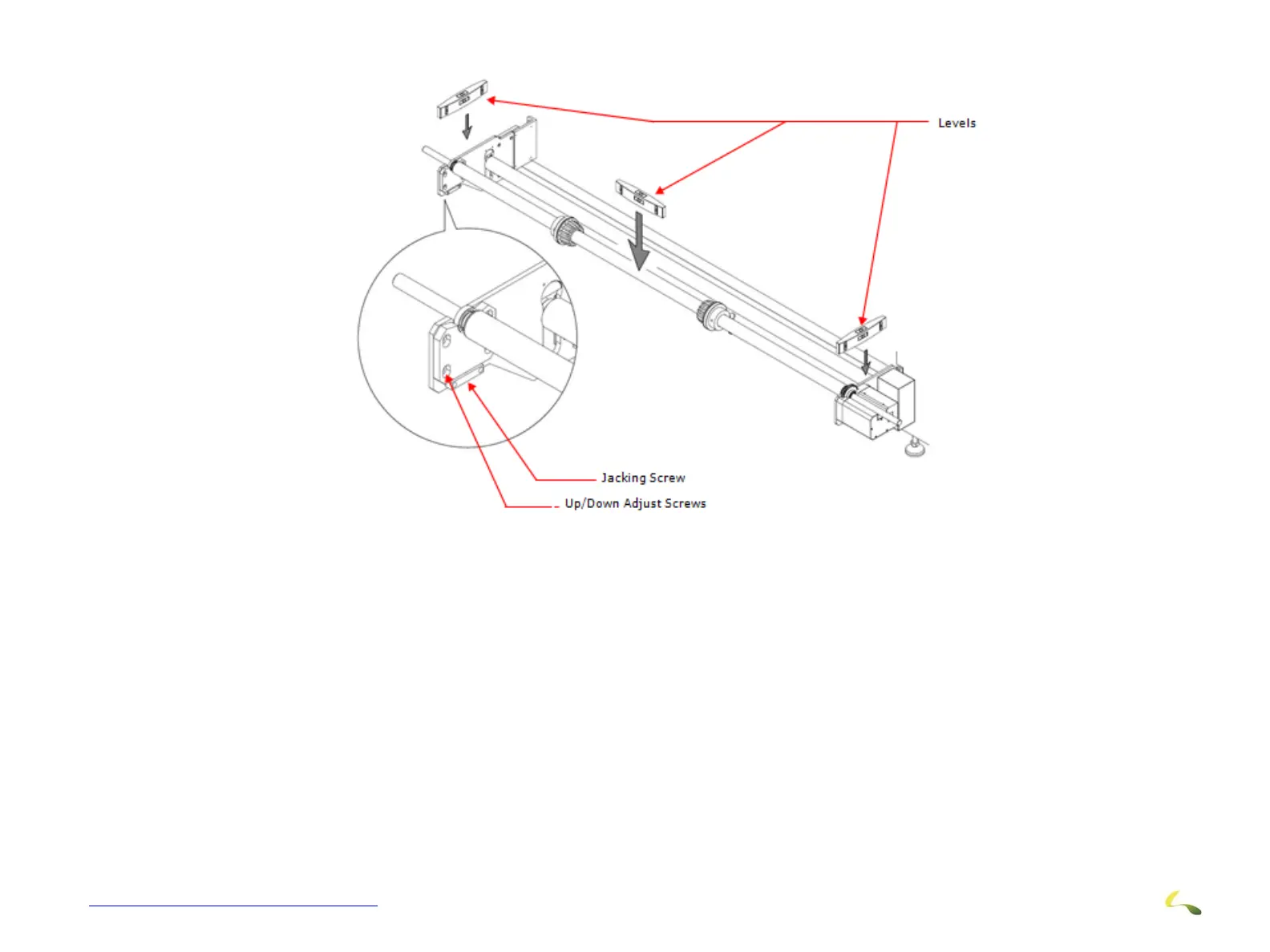 7. Level the media paper shaft using the up/down adjustment screws on the bracket without the motors.
