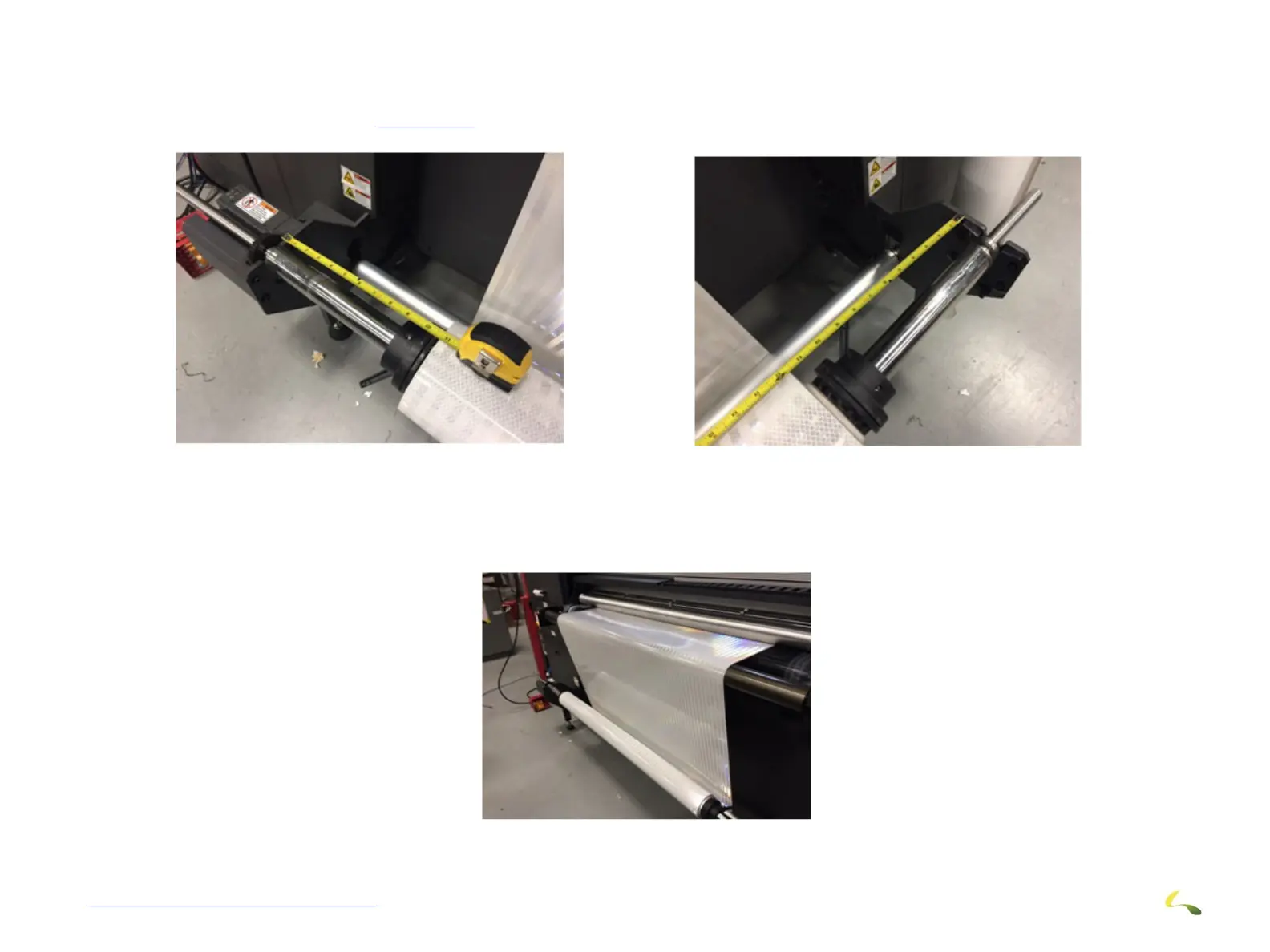1. Load the roll media on the rear/supply roller aligned perfectly in the middle of the media roller and print area. Using a tape mea-