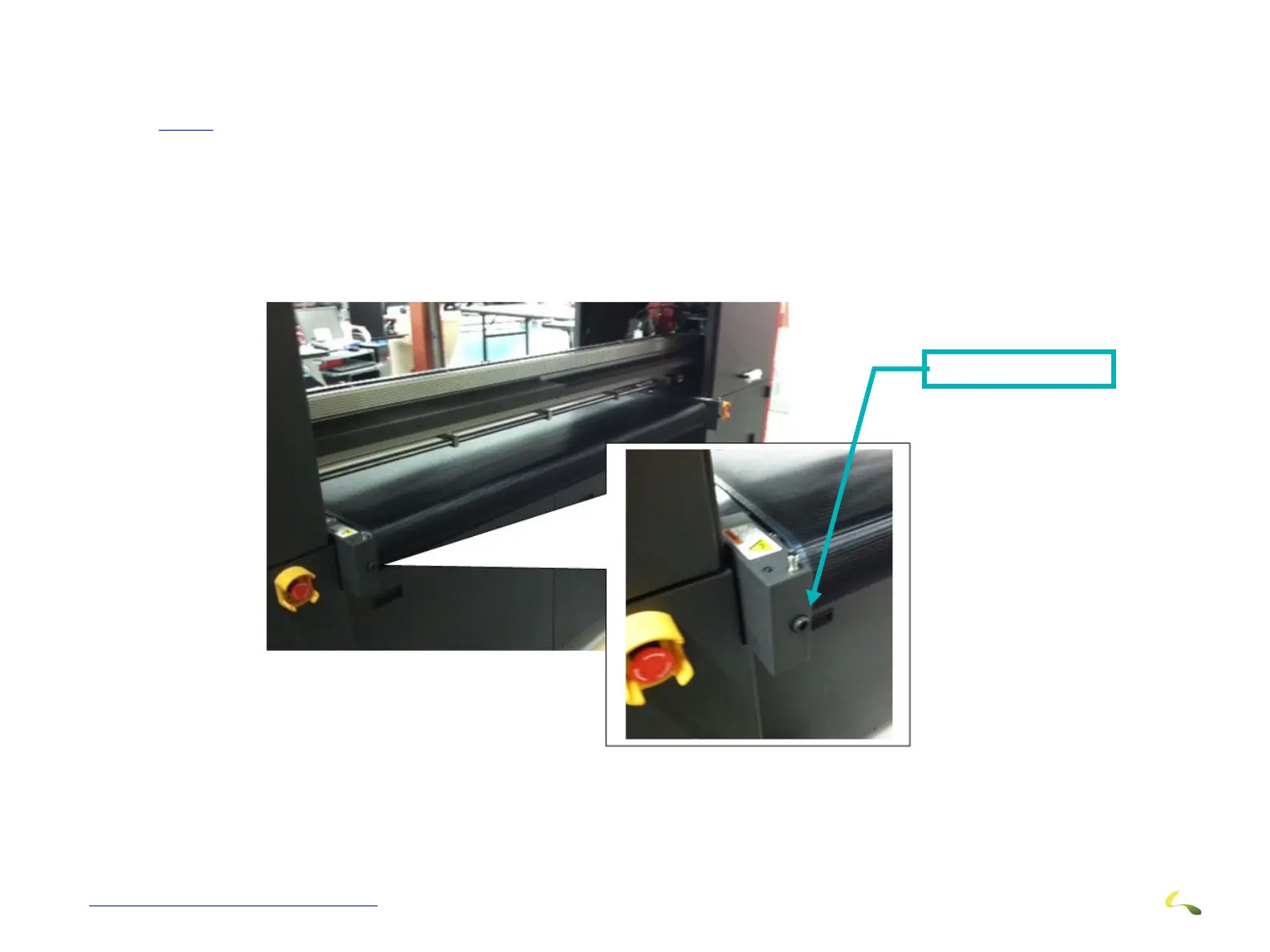 1.Go to the rear of the printer and locate the Media Belt Adjustment Screws. There are 2 adjustments, one on either side of the belt. (See