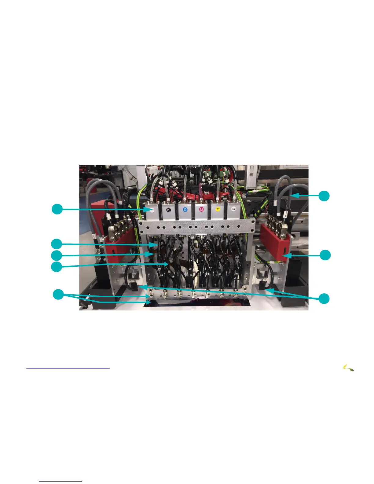 4Ink Supply Tubes 5Ink Bleed Valves and Drain Trough 6 Lamp Cables