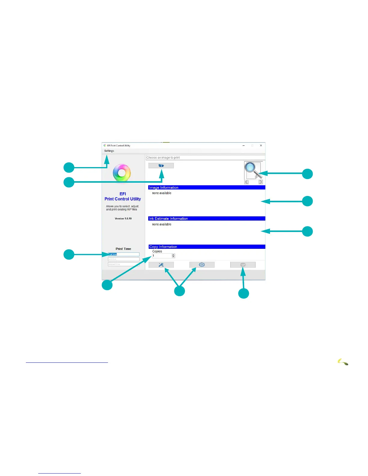 4Number of Copies 5Opens Control window 6 Print Button prints selected file.