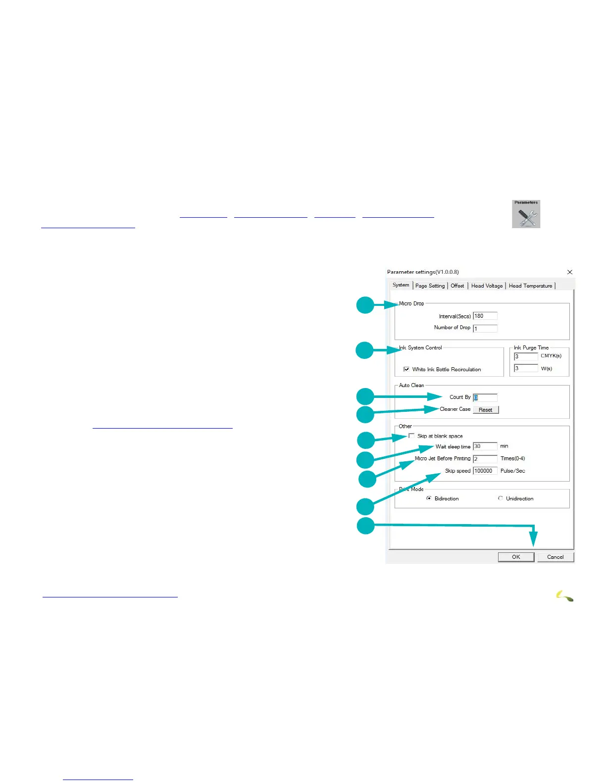 1. Micro Drop Interval and drop times for the "misting" of print heads
