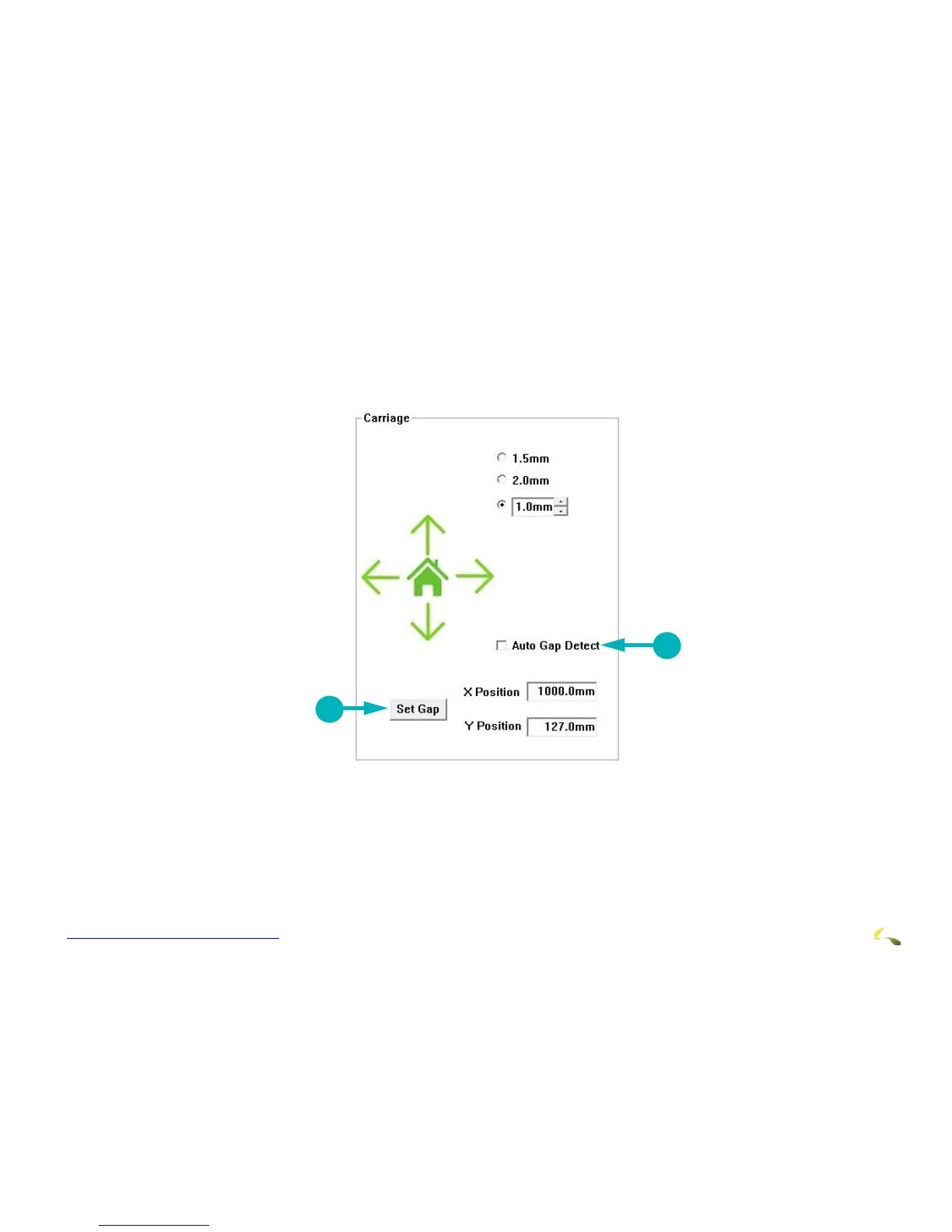 1. In the EFI Pro 24f Control window’s Carriage box, click the Set Gap button.
