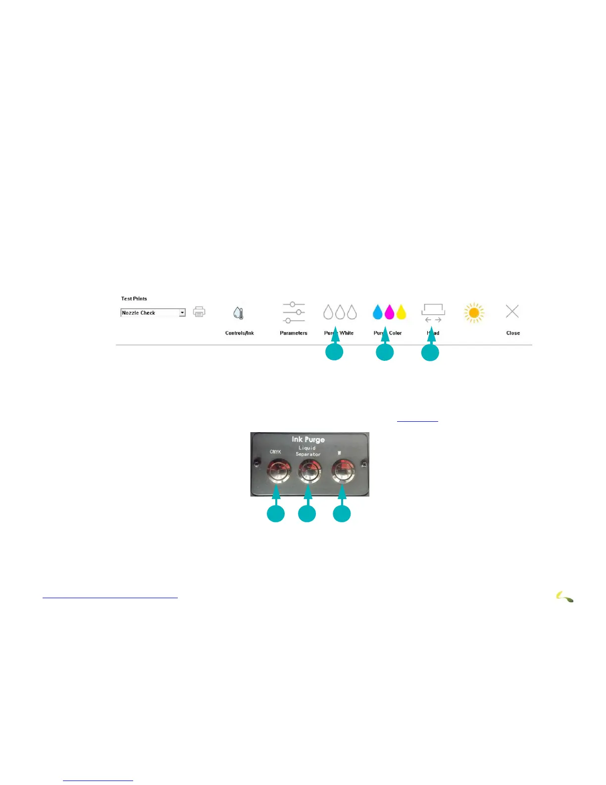 2. b. From the EFI Pro 24f Control screen, choose the Purge Color icon to purge the CMYK print heads. The system automatically fol-