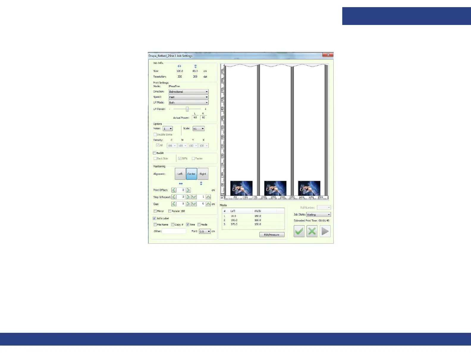 The file is 120 cm wide. If there is not enough room on current roll for the next copy (along the X-axis,) the copy is printed on the next roll.