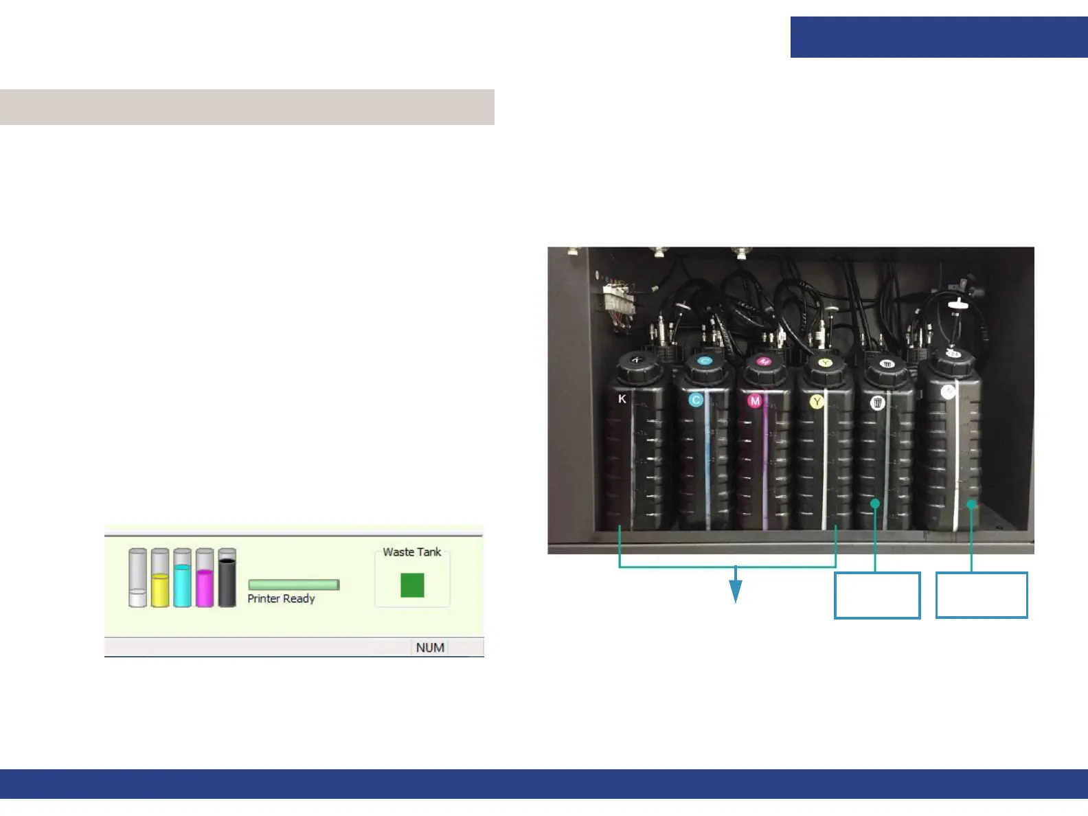 yellow, black and white) and a waste ink tank (to store ink