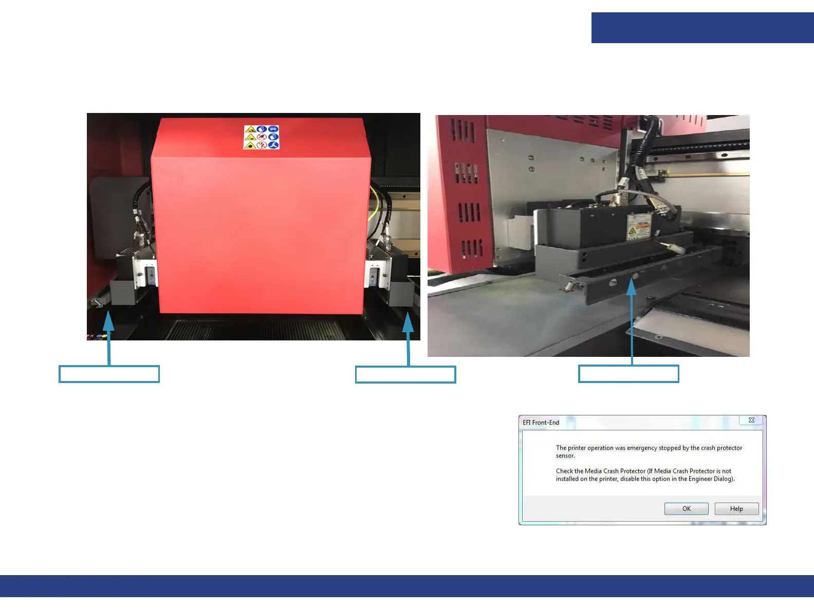 carriage path, the crash protector is triggered and the printer stops working immediately.