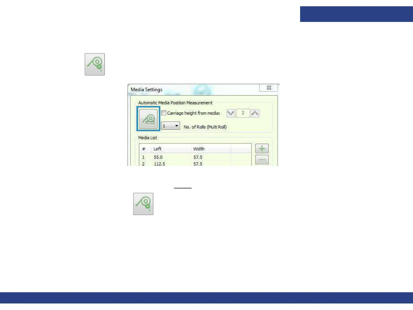 3. Click the Measure Media icon. The detector measures the height and adjusts the carriage height. After adjustment, the