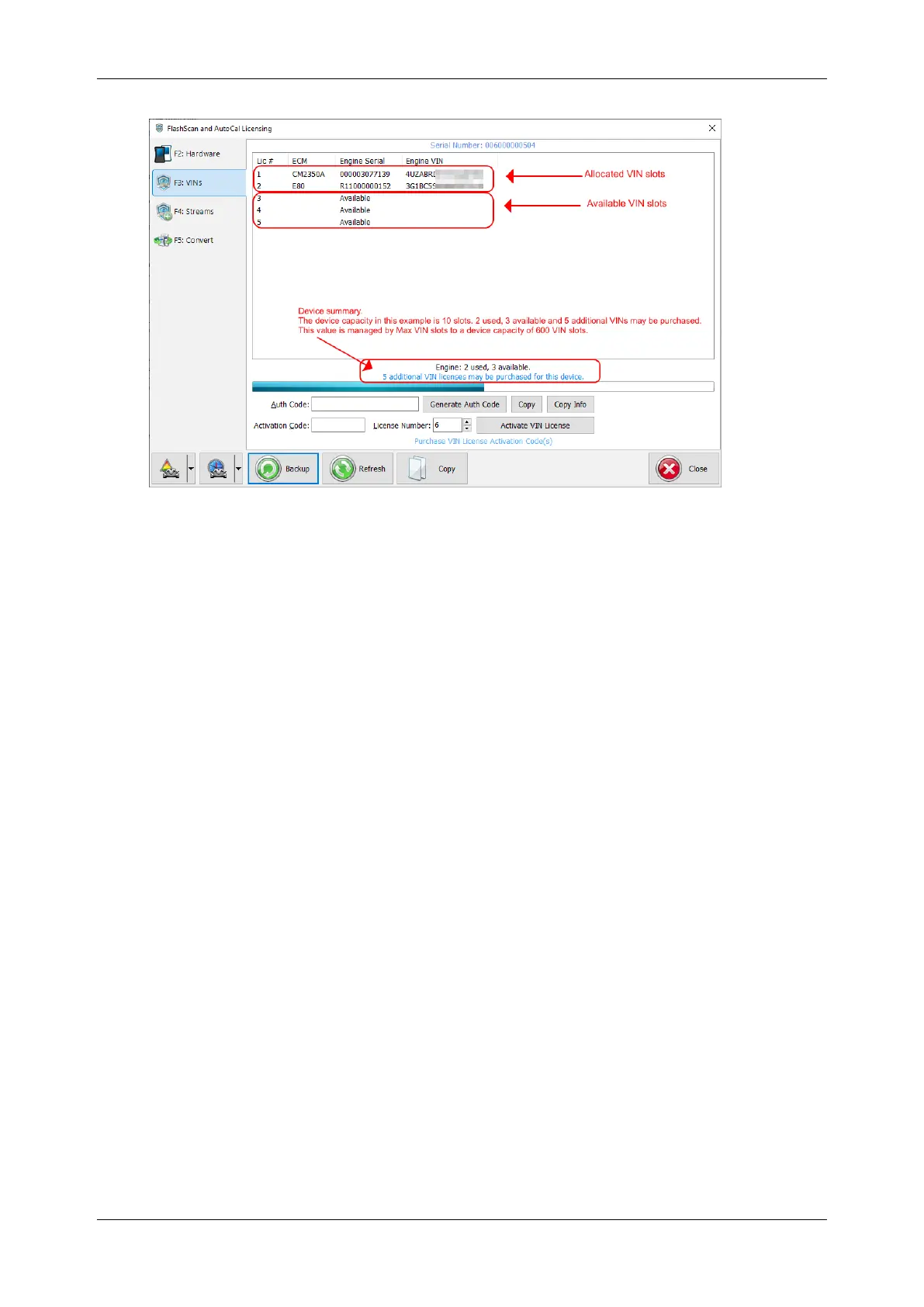 3. Navigate to [F7: VIN Licenses] -> [F2: VINs]