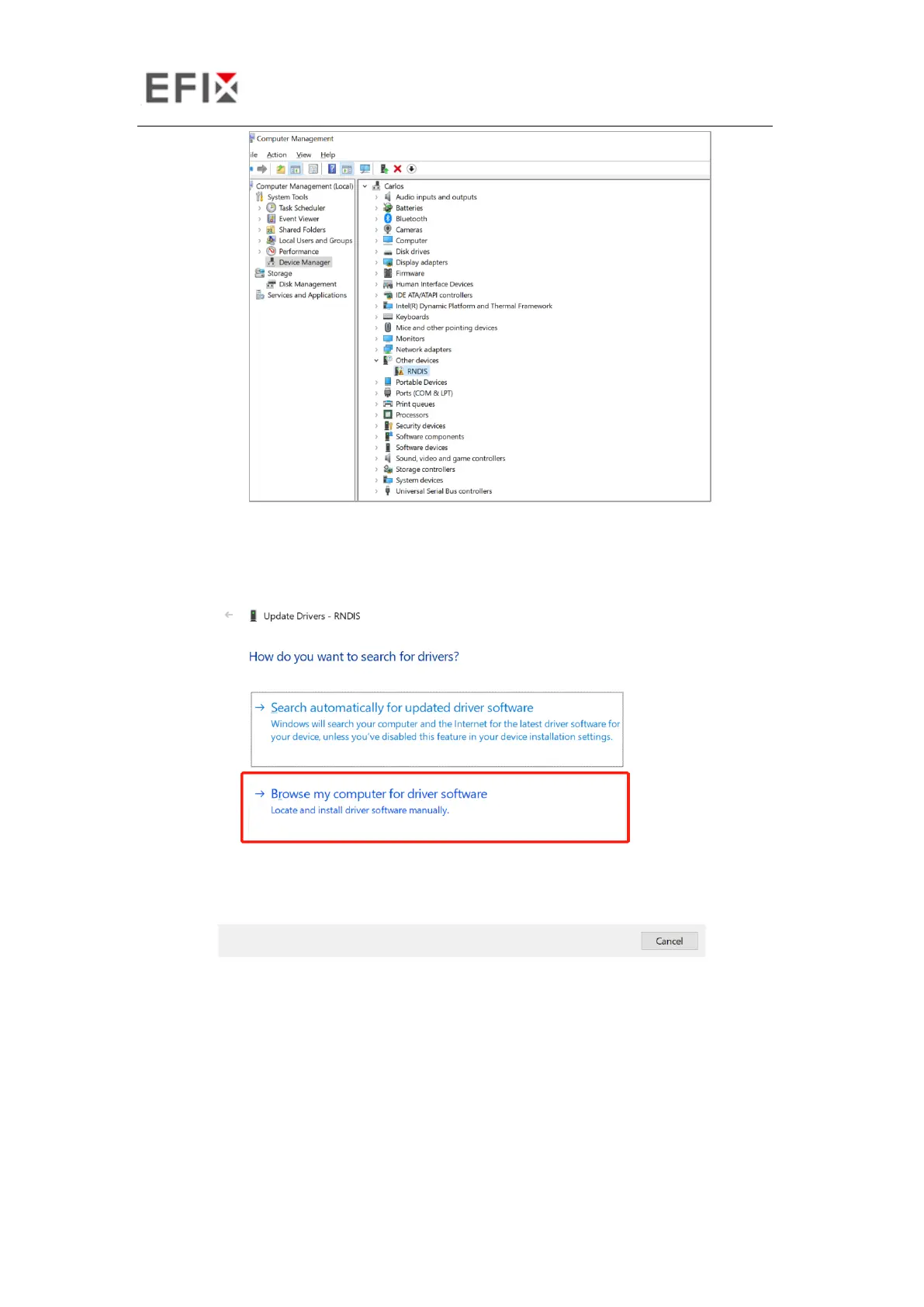 a) Right click RNDIS, and select update driver, and choose Browse my computer for