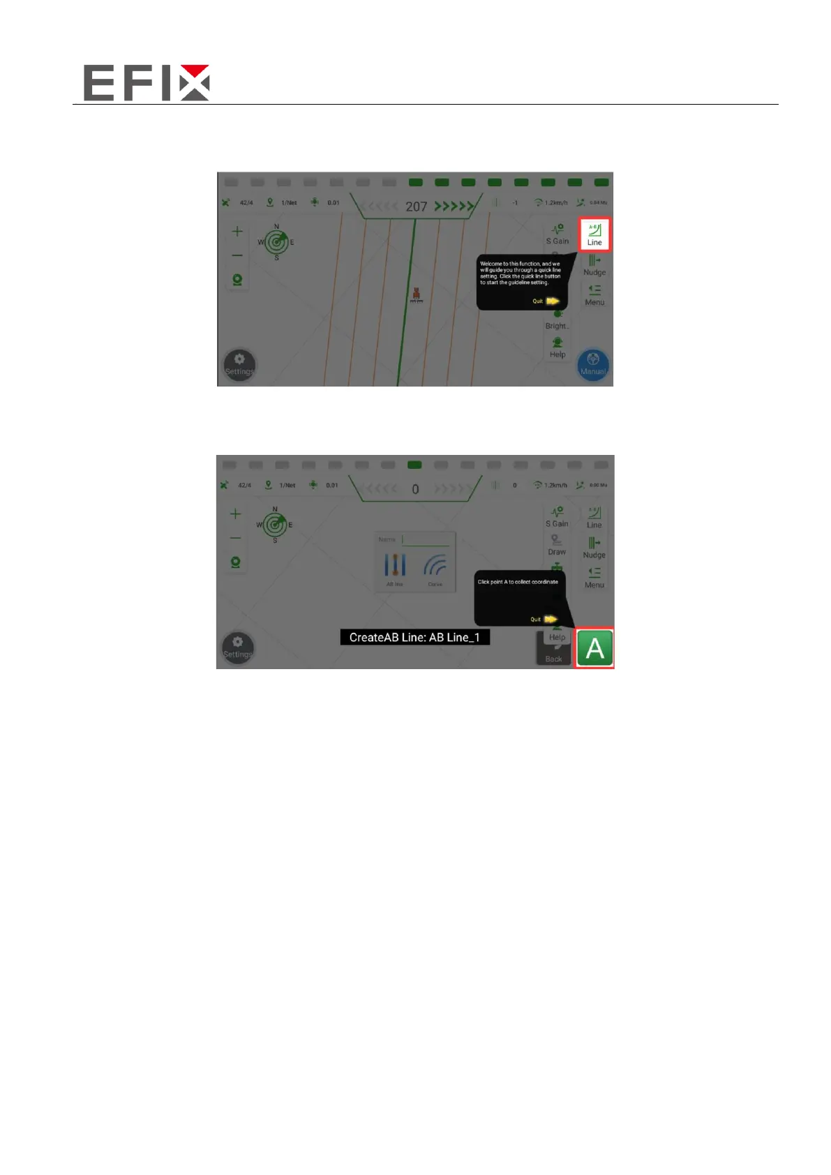 the screen. At this point, stop the vehicle at the desired starting point for line setup, which is typically