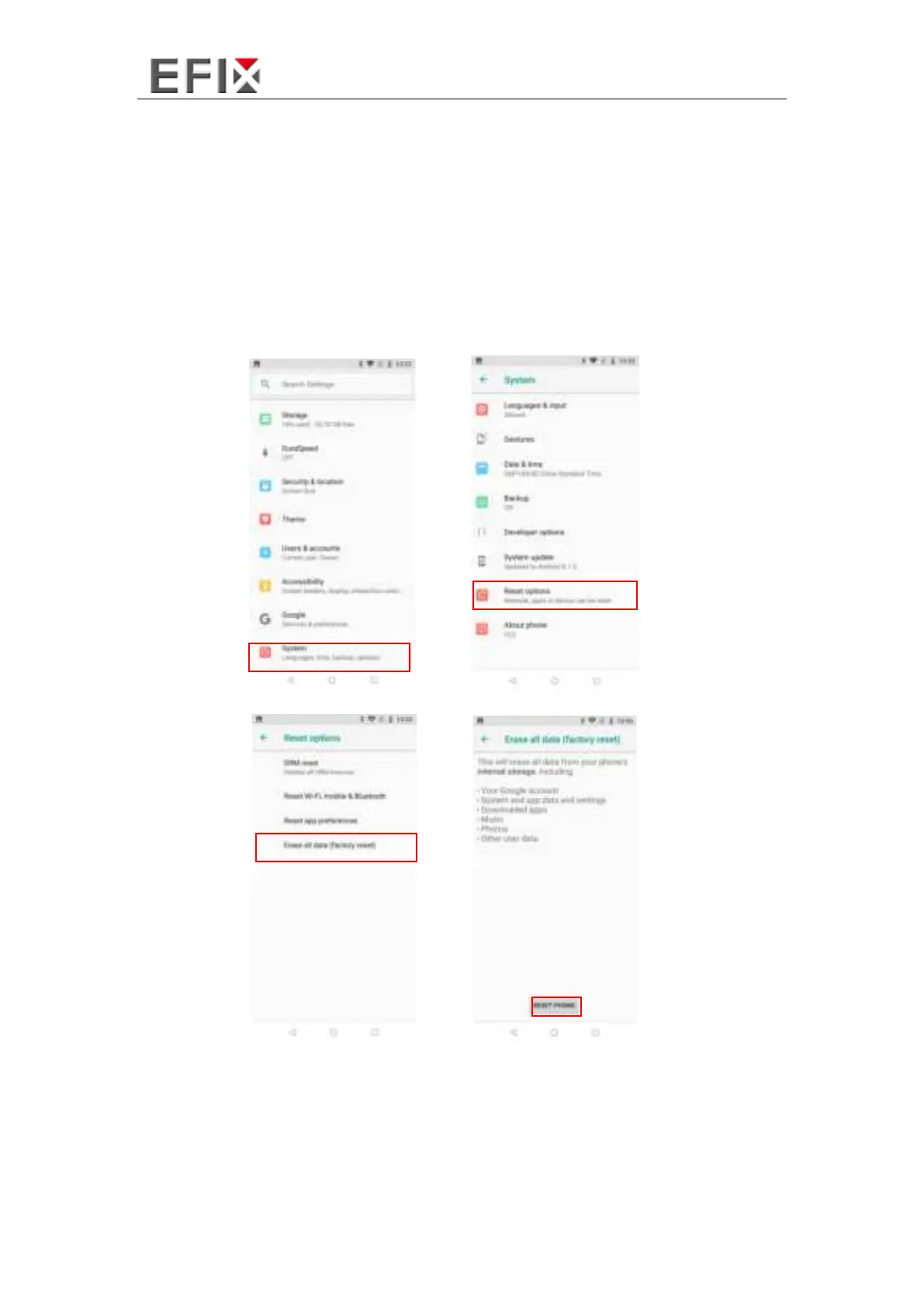 [Erase all data] – [RESET PHONE]