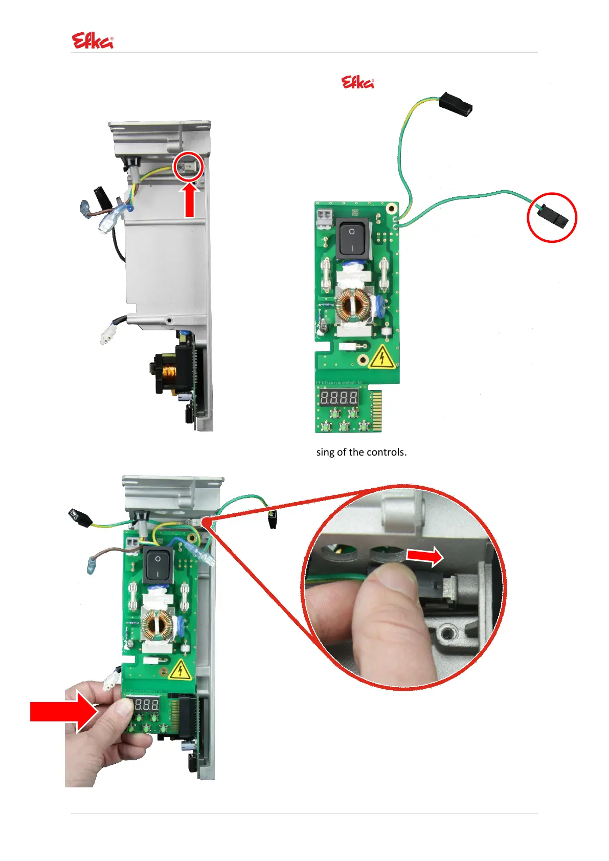 Connect the "Fast on" plug with the cast housing of the controls.