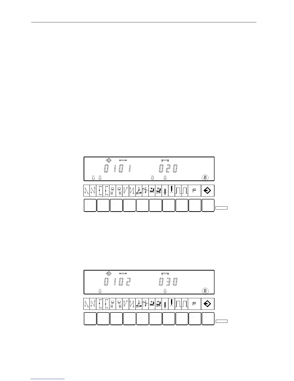 Press the 2 key " The lefthand arrow above the 2 key indicates that stitch counting forward is On. The number of