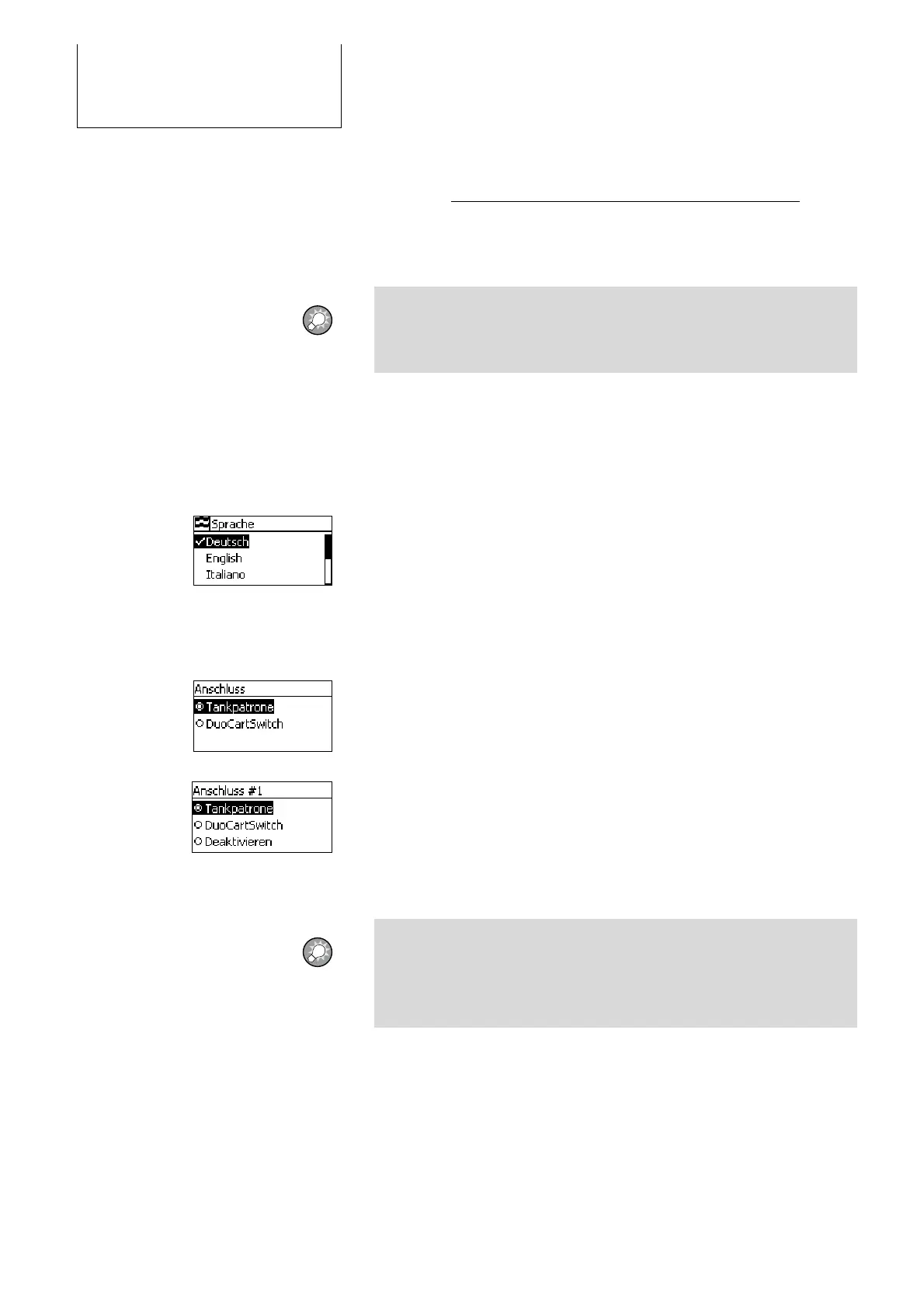 über das Untermenü „Tankpatrone“ im Hauptmenü bei