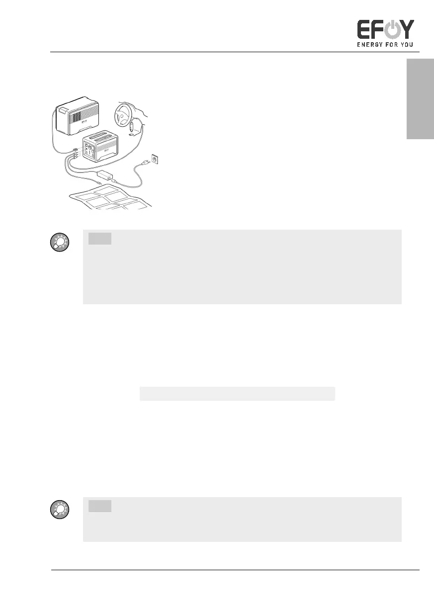 Während des Ladevorgangs können alle Stromausgänge genutzt werden.