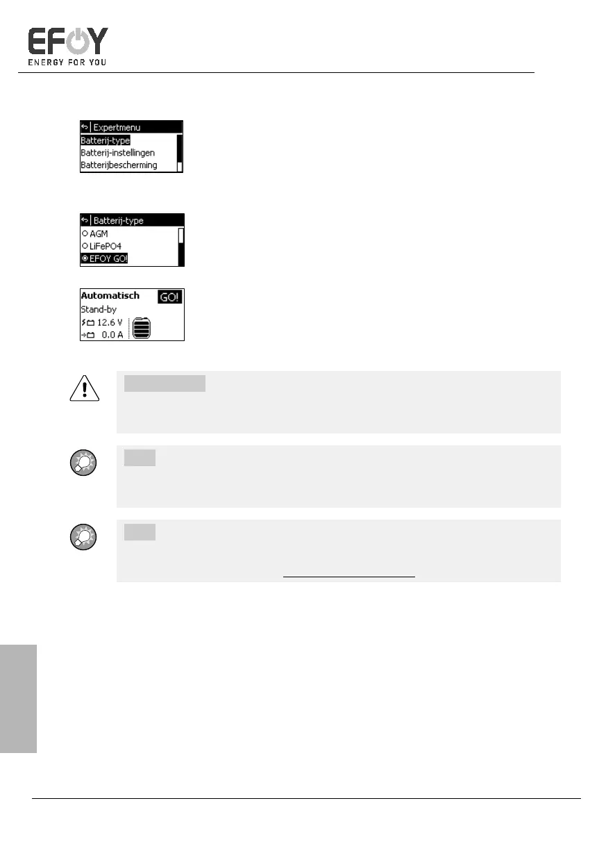 De instellingen in het expertmenu gelden voor alle EFOY COMFORT modellen